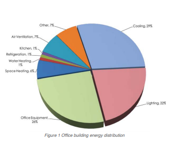Perbaikan signifikan telah dilakukan pada desain unit penanganan udara, sistem distribusinya, dan sistem kontrolnya. Peningkatan dalam desain air handler dan sistem, kontrol, serta operasi, telah memberikan kemajuan dalam pengendalian suhu dan penghematan energi. Gambar 1 menunjukkan profil penggunaan energi pada sebuah gedung perkantoran khas. Ventilasi udara, pemanasan ruang, dan pendinginan adalah komponen energi utama yang terkait dengan pengoperasian unit penanganan udara.