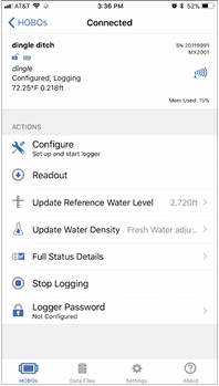 Untuk mengatur logger, cukup ketuk tombol “Configure” pada aplikasi HOBOmobile. Di layar konfigurasi, Anda bisa: