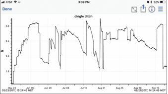 Grafik yang ditampilkan menunjukkan fluktuasi tinggi air dan memungkinkan verifikasi cepat bahwa pencatatan di lokasi berjalan dengan baik.