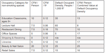 Daripada mengukur polutan satu per satu, ASHRAE Standard 62.1 merekomendasikan tingkat ventilasi tertentu berdasarkan: