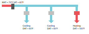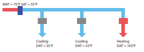 Sistem yang menyediakan udara di bawah 55°F (13°C) biasanya dirancang khusus dengan diffuser berkecepatan tinggi dan tingkat pencampuran udara yang tinggi untuk mencegah masalah ini. Jika udara suplai kurang dari 55°F dan terjadi dumping, perlu dilakukan penyelidikan lebih lanjut untuk menemukan penyebab suhu udara suplai yang terlalu rendah.