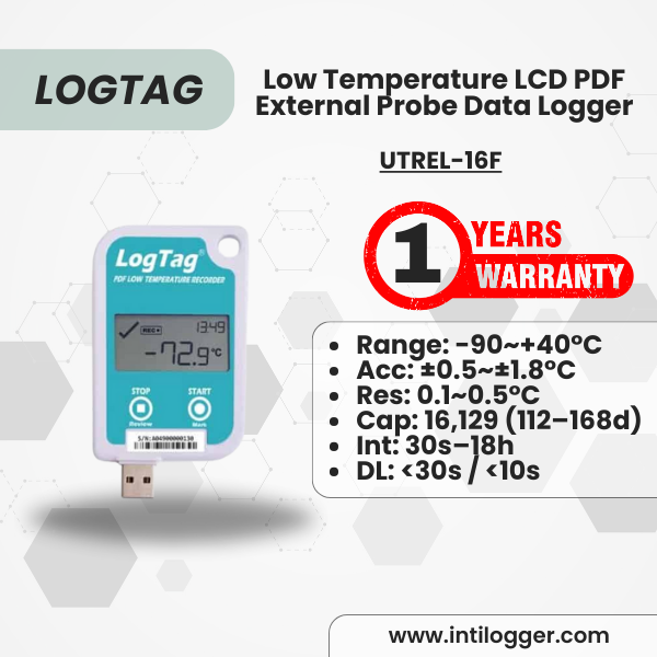 The LogTag® UTREL-16F is a highly accurate and reliable temperature data logger designed for low-temperature monitoring applications. Compatible with the ST10 external probe, this logger supports precise temperature measurement from -90°C to +40°C (-130°F to +104°F), making it ideal for sensitive cold storage, pharmaceutical, and laboratory environments.