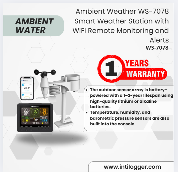 Ambient Weather Alat Perekam Data Cuaca WS-7078 Smart Weather Station with WiFi Remote Monitoring and Alerts