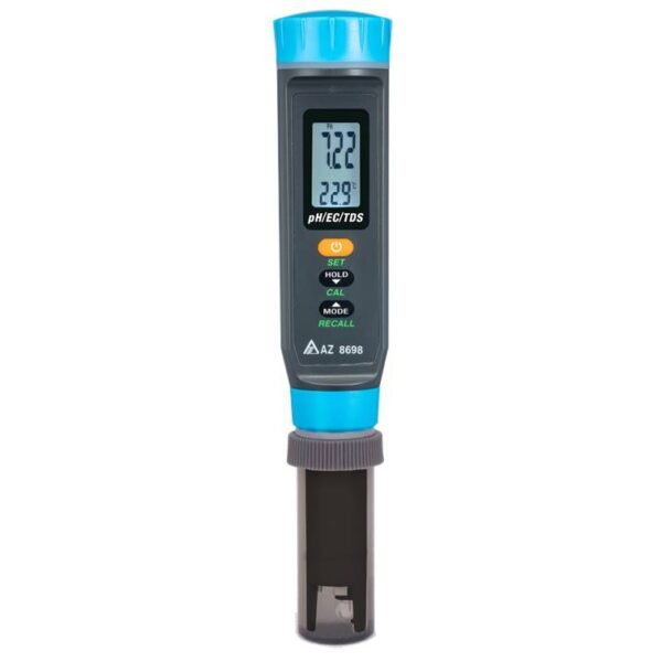 8698 AZ PH. EC. TDS. Temp. 4 in 1 Pen adalah probe pengujian kualitas air yang sangat serbaguna dan canggih yang dirancang untuk berbagai aplikasi, terutama di lingkungan di mana pengukuran parameter air yang tepat sangat penting.