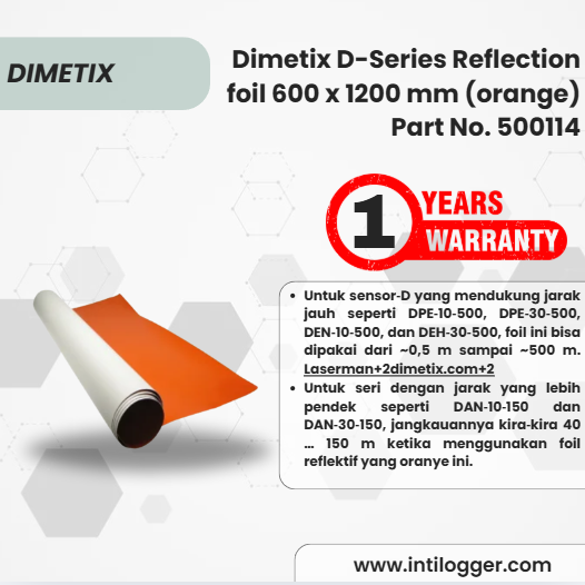 Foil Reflektif 600 × 1200 mm (Oranye) Untuk pemasangan sendiri; jangkauan instrumen D‑Series kira‑kira 0,5 m (mulai 40 m) hingga 500 m (harap cek spesifikasi perangkat) intrial.com.pe+1