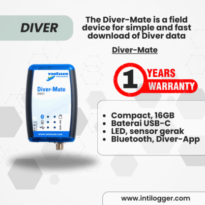 Diver-Mate dirancang untuk pengunduhan data yang sederhana dan cepat dari data logger Diver untuk monitoring air tanah. Perangkat ini meningkatkan efisiensi pengunduhan sekaligus mengurangi kesalahan transfer data, dan dapat langsung terhubung ke kabel DXT tempat Diver dipasang di dalam sumur.