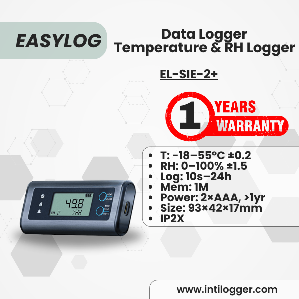 Alat ini menggunakan baterai AAA dengan daya tahan lebih dari 1 tahun dan dilengkapi bracket untuk pemasangan di dinding. EL-SIE-2+ mengukur suhu dan kelembaban, namun tersedia juga model lain untuk suhu saja atau suhu, kelembaban, dan tekanan. Cocok untuk gedung, gudang, logistik, dan ruang sensitif.