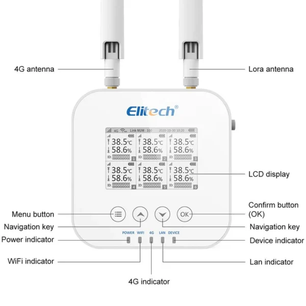 • [EMAIL/SMS/APP ALARM] Aplikasi Elitech App (iOS & Android) memungkinkan pengaturan parameter jarak jauh dan manajemen perangkat.