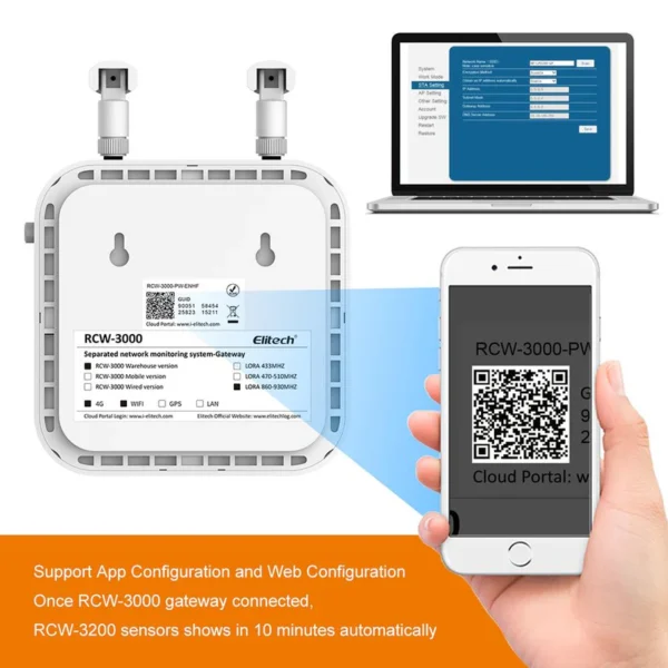 Elitech Alat Perekam Data RCW-3000 & RCW-3200 WiFi 4G Wireless Temperature Humidity Data Logger & Transceiver Monitor System dengan Cloud Storage dan Aplikasi Mobile