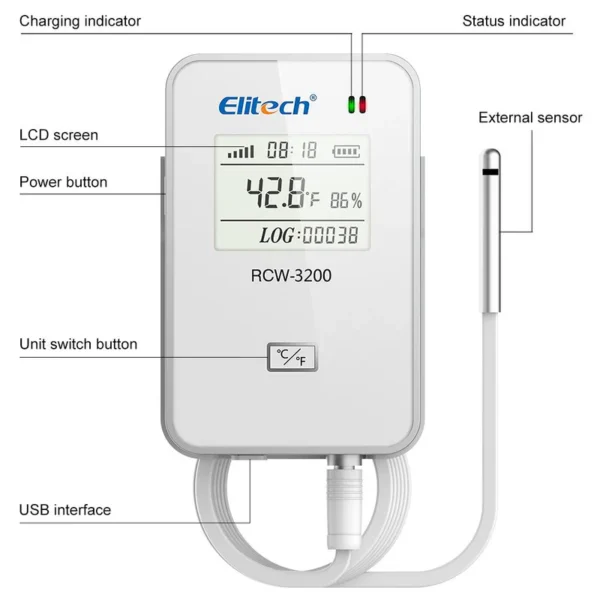 Elitech RCW-3000 & RCW-3200 adalah sistem WiFi & 4G wireless temperature humidity data logger dengan fungsi transceiver monitor yang mendukung pemantauan suhu dan kelembapan secara real-time. Data tersimpan aman di cloud storage dan dapat diakses melalui aplikasi mobile atau browser, sehingga memudahkan pengguna dalam industri makanan, farmasi, logistik, maupun cold chain.
