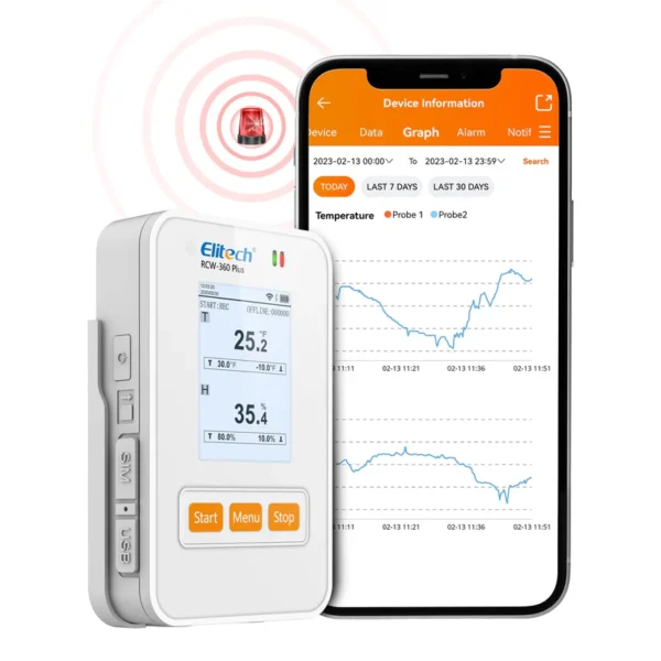 Elitech RCW-360 Plus 4G adalah versi terbaru dari RCW-360 4G dengan fitur lebih lengkap seperti pemantauan suhu & kelembapan real-time, alarm multi-channel (Email, SMS, APP), pencatatan data, unggah data otomatis, cetak via Bluetooth, hingga pelacakan lokasi GPS. Alat ini banyak digunakan di industri makanan, katering, logistik, farmasi, serta sektor lain yang membutuhkan sertifikasi sistem HACCP.