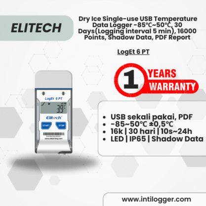 Home/Data Loggers/Elitech Alat Perekam Data LogEt 6 PT Dry Ice Data Logger Suhu Sekali Pakai, USB, Rentang -85℃~50℃, Durasi 30 Hari, 16.000 Titik, Shadow Data, Laporan PDF