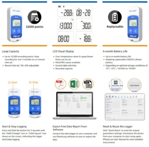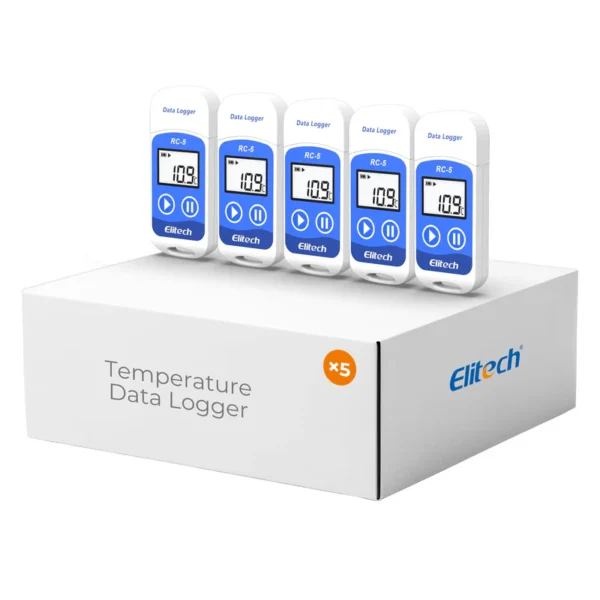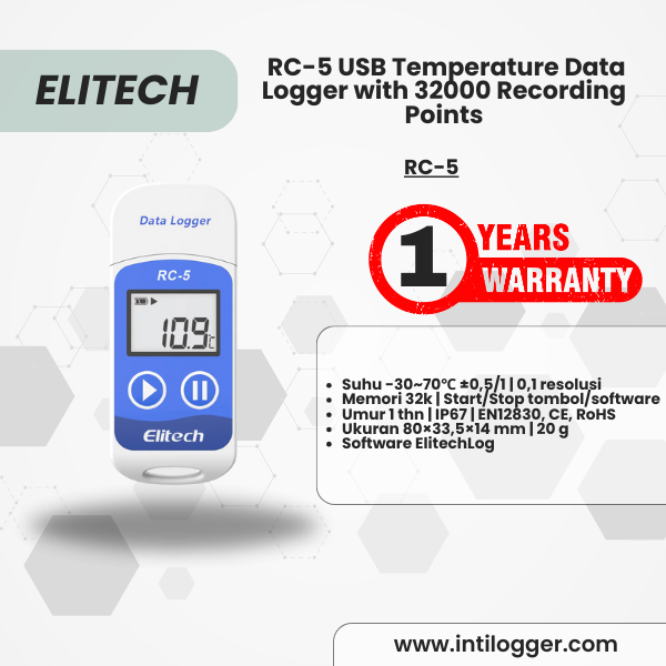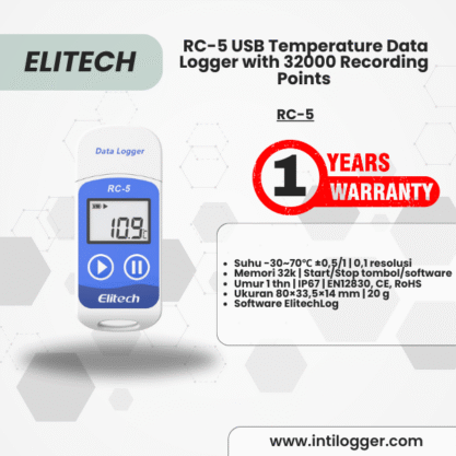 Elitech RC-5 USB Temperature Data Logger dengan 32.000 Titik Perekaman adalah alat perekam suhu portabel yang praktis untuk pemantauan rantai dingin, penyimpanan vaksin, obat, maupun logistik makanan.