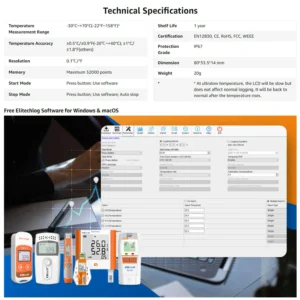 Spesifikasi Teknis Elitech RC-5 USB Temperature Data Logger