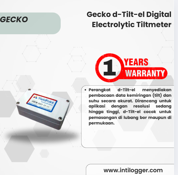 Perangkat d-Tilt-el menyediakan pembacaan data kemiringan (tilt) dan suhu secara akurat. Dirancang untuk aplikasi dengan resolusi sedang hingga tinggi, d-Tilt-el cocok untuk pemasangan di lubang bor maupun di permukaan.
