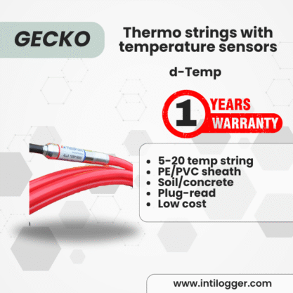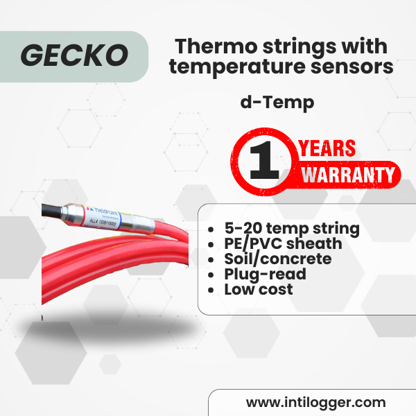 d-Temp merupakan thermo string berkualitas tinggi yang berisi antara 5 hingga 20 sensor suhu, semuanya tertanam dalam selubung plastik tahan air. Cocok digunakan untuk pemantauan suhu di tanah, beton, atau lingkungan lembap lainnya dalam proyek geoteknik dan konstruksi.