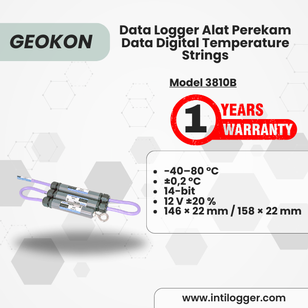 Model 3810B Digital Temperature Strings adalah sistem sensor suhu digital yang dirancang untuk mengukur suhu secara akurat di berbagai titik dalam satu lubang bor. Sistem ini memungkinkan pemantauan suhu secara real-time dengan presisi tinggi dan kemudahan integrasi ke dalam berbagai aplikasi teknik sipil dan geoteknik.