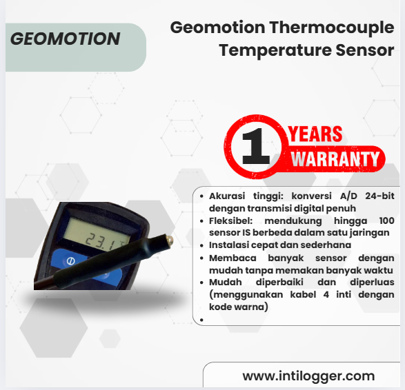 Thermocouple Temperature Sensor digunakan untuk mengukur suhu pada beton, tanah, dan batuan. Sensor ini sangat ideal untuk: