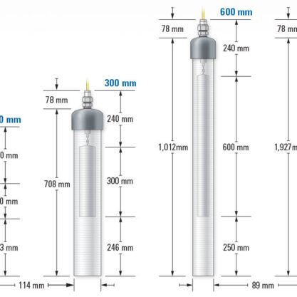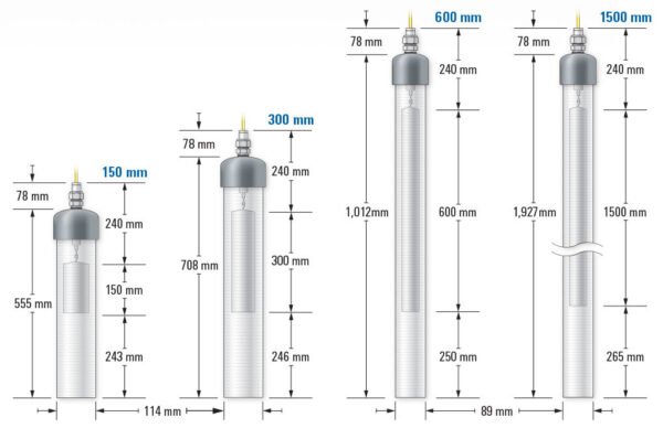 • Rentang Standar¹: 150, 300, 600, 1500 mm