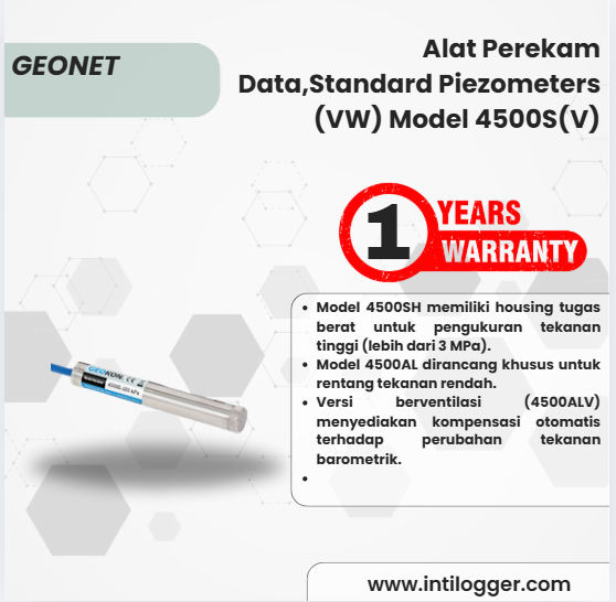 Model 4500 Standard Piezometer dirancang untuk mengukur tekanan fluida, seperti elevasi air tanah dan tekanan pori, ketika dipasang langsung di dalam timbunan, urugan, dan struktur tanah lainnya.