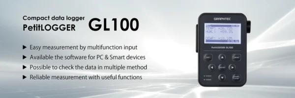 GL100 adalah data logger portabel yang dapat mengukur berbagai fenomena dengan pengaturan sederhana. Alat ini mampu mendeteksi jenis sensor secara otomatis hanya dengan menghubungkan sensor ke perangkat.