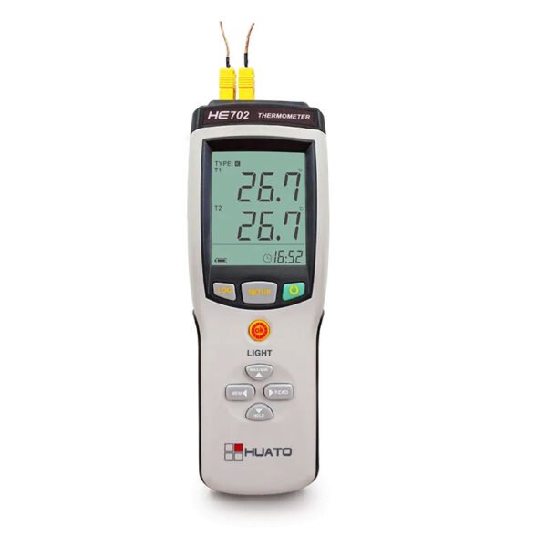 Seri HE70X Multi-Channel Thermocouple Thermometer dikembangkan oleh HUATO. Perangkat ini merupakan instrumen pengukur suhu yang cepat, andal, dan presisi tinggi, mendukung 8 tipe termokopel seperti K, J, E, T, R, S, N, dan B.