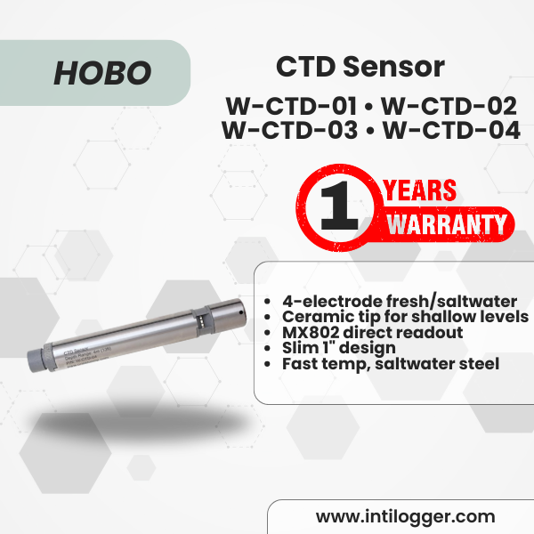 Sensor CTD (Konduktivitas, Suhu, dan Kedalaman) ini merupakan sensor yang dapat diganti dan dirancang khusus untuk bekerja dengan pencatat data air HOBO Seri MX800. Sensor ini mampu mengukur konduktivitas air, suhu, dan tinggi permukaan air (kedalaman) secara akurat. Selain itu, sensor ini memungkinkan logger untuk menghitung secara otomatis konduktivitas spesifik, salinitas, dan total padatan terlarut (TDS).