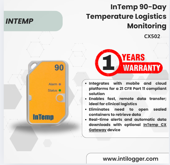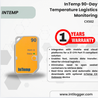 InTemp CX502 adalah pencatat data suhu sekali pakai berbasis Bluetooth yang dirancang untuk memantau suhu selama pengiriman selama maksimal 90 hari. Perangkat ini sangat ideal untuk pengirim