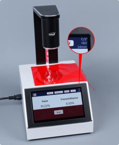 Instrumen ini dapat mengukur haze, transmitansi, warna, dan kejernihan pada berbagai material transparan maupun semi transparan seperti plastik, kaca, dan film serta mampu menampilkan kurva transmitansi spektral secara akurat.