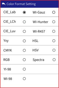 Ruang warna CIE Lab, Luv, LCh, Yxy, CMYK, RGB, HSL, HSV, WI-98, WI-Gauz, WI-R457, WI-Hunter, YI-98, Reflectance