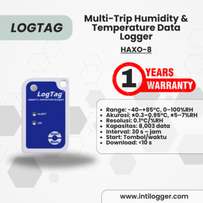 LogTag® HAXO-8 adalah data logger suhu dan kelembaban multi-pakai yang merekam hingga 8.003 data suhu dan kelembaban secara bersamaan, dalam rentang -40°C hingga +85°C dan 0–100% RH. Logger ini memiliki akurasi tinggi, resolusi 0.1°C dan 0.1%RH, serta indikator ‘OK’ dan ‘ALERT’ untuk menandai kondisi normal atau pelanggaran batas yang dapat dikonfigurasi. Pengaturan perekaman dapat dilakukan melalui software LogTag Analyzer, termasuk jeda mulai dan interval pencatatan. Data dapat diunduh dalam kurang dari 10 detik dan diekspor ke aplikasi seperti Excel. Ditenagai baterai internal yang bertahan hingga 2–3 tahun, HAXO-8 juga dilengkapi jam waktu nyata dan memiliki perlindungan IP61. Cocok untuk pemantauan lingkungan di berbagai industri yang memerlukan data akurat dan stabil.