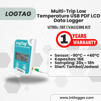 LogTag® UTREL-16F adalah logger suhu multi-pakai dengan kapasitas pencatatan hingga 16.129 data suhu menggunakan probe eksternal, dalam rentang pengukuran -90°C hingga +40°C. Akurasinya lebih baik dari ±0.5°C untuk -20°C hingga +10°C, dan memiliki resolusi pembacaan mulai dari 0.1°C hingga 0.5°C tergantung suhu. Logger ini dapat dikonfigurasi dengan tiga alarm atas dan tiga alarm bawah, serta menampilkan indikator “REC” pada layar LCD saat merekam. Data dapat diunduh dalam format PDF dalam waktu kurang dari 30 detik, atau file terenkripsi LTD untuk analisis di LogTag Analyzer® (kurang dari 10 detik). Baterai internalnya bertahan hingga 2 tahun dalam penggunaan normal. Perangkat ini mendukung antarmuka USB 2.0, tahan debu (IP61 jika dipasang vertikal dengan penutup USB), dan dilengkapi real-time clock presisi tinggi serta dukungan multi-bahasa (Inggris, Spanyol, Prancis, Rusia, Jerman).