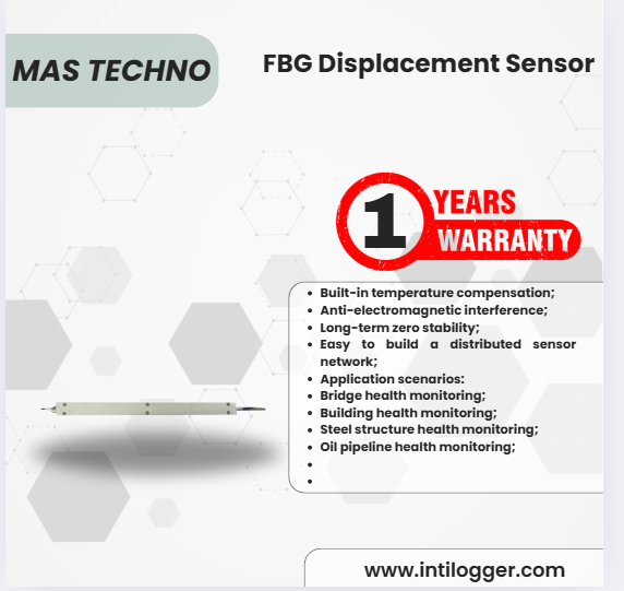 Model FBG-DST displacement sensor digunakan untuk pengukuran jangka panjang pada balok struktural, gedung besar, serta struktur beton dan baja lainnya, termasuk penurunan bangunan, perpindahan, dan longsoran tanah.