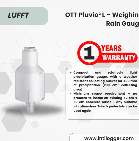 he OTT Pluvio² L is an all-weather precipitation gauge that uses advanced weight-based technology to measure the amount and intensity of rain, snow, and hail with exceptional accuracy. Developed in collaboration with leading meteorological services, it employs a high-precision load cell and sophisticated algorithms that compensate for wind, temperature, and evaporation—ensuring long-term accuracy and reliability.