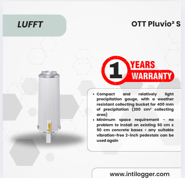 he OTT Pluvio² L is an all-weather precipitation gauge that uses advanced weight-based technology to measure the amount and intensity of rain, snow, and hail with exceptional accuracy. Developed in collaboration with leading meteorological services, it employs a high-precision load cell and sophisticated algorithms that compensate for wind, temperature, and evaporation—ensuring long-term accuracy and reliability.