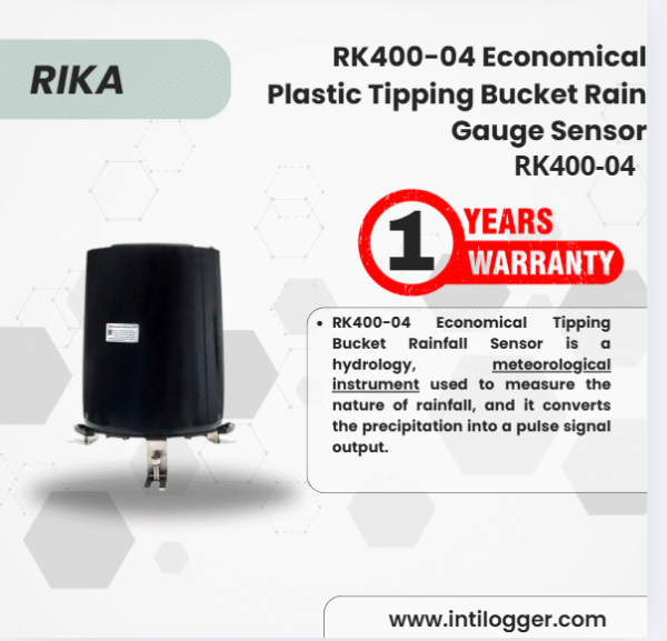 RK400-04 adalah instrumen hidrologi dan meteorologi yang digunakan untuk mengukur intensitas curah hujan. Sensor ini bekerja dengan prinsip ember jungkit, di mana setiap jumlah tertentu dari curah hujan akan menyebabkan ember menumpahkan air dan menghasilkan sinyal pulsa sebagai output.