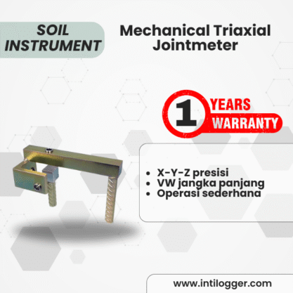 Mechanical Triaxial Jointmeter dirancang untuk mengukur pergerakan pada tiga sumbu (X, Y, Z) di sepanjang sambungan atau retakan, baik pada sambungan konstruksi beton maupun retakan tarik pada batuan.